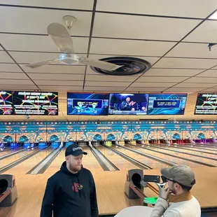 Not to great of an experience. The touch screen pad on our table wasn't working and we weren't allowed to switch lanes. The guy said he could do everything from the register. A lot of old shoes that just make you're feet feel gross after wearing them even when you have socks on. Didn't see any hand sanitizer stations in site.
