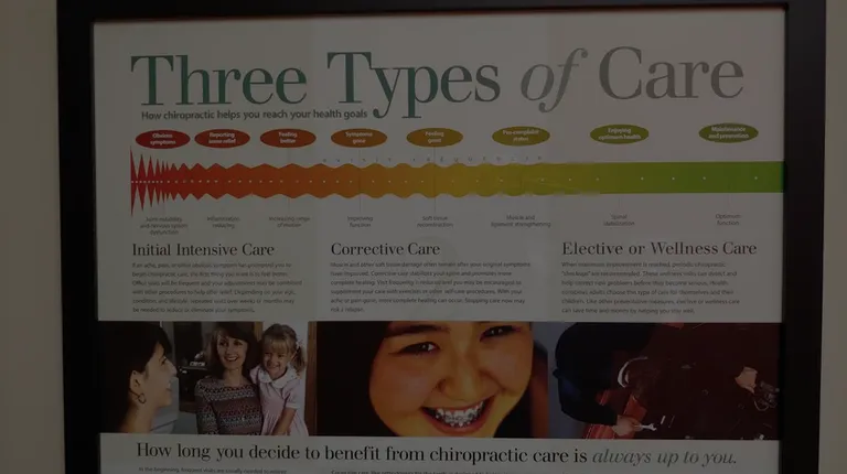 If you are looking for a chiropractor, I HIGHLY recommend that you do NOT go here! The office was fine and the reception staff perfectly friendly. The problem is the doctor. After a ``super thorough" initial exam where the doctor didn't bother to take x-rays (likely because I am not worth the film cost), the doctor then proceeded to give me a lecture about chiropractic care, which was borderline insulting to my intelligence. Then came the sleazy, ``used car salesman" pitch that I need a full ``spinal tune-up" and commit to 20 sessions right away. When I declined to commit to that, he adjusted my tailbone, which took about a minute and a half and sent me on my way. He told me that that should make a real difference; it didn't. It was a complete waste of $58. As it turns out, I went to another chiropractor two days later where I learn that I had a bulging disk in my lumbar. I had two real sessions with this other chiropractor, which actually made a difference. In the end, I have come to the conclusion that either (1) he is actively bad at his job, or (2) he doesn't care about helping people and is just after their money. I think the later is more likely, but I can't say for sure. In either case, you should probably go somewhere else. I would give him zero stars if I could.