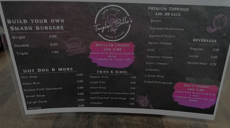 Started out with a double smash burger, pepperjack, onion & mustard with a 1/2 & 1/2 order of fries & onion rings. Cooked fresh & served hot! Staff were super friendly & helpful when looking at the vast selection of homemade ice cream. There are several televisions on, & the atmosphere is still quite enough for conversation.Took 1/2 gallon of Coffee Bourbon ice cream home.....FANTASTIC!!!!