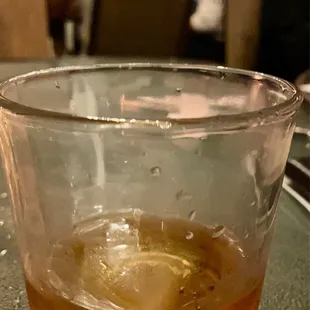 a drink in a glass on a table