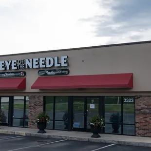 I've been needlepointing since high school and have only gotten my patterns from Eye of the Needle! Their staff is very personable and helpful as well- and will be able to teach you the stitches if you've never needlepointed before.The lady who owns EOTN does the needlepoint painting herself and she does amazing work. She is not there every single day the store is open so if you're looking to get initials painted on something pre-made then you may want to call ahead to be sure. There is a large variety of pre-made patterns for belts, keychains, stockings, etc, but you can also order a custom made pattern as well. EOTN will also leather your needlepoint when you've finished. They are a busy store, so expect it to take 2-3 weeks +.