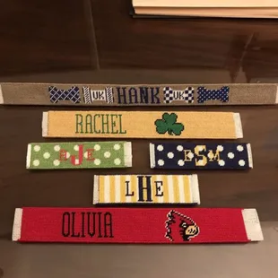I picked up needlepointing in college because all girls in sororities would make them for their boyfriends. I started out small with keychains and then finally made a belt. I've probably made 3 belts and over 20 keychains. I made keychains for all my bridesmaids this summer. With some concentration, I was able to finish all 5 and a dog collar in 2 months. They have several options for leathering but I tend to just stick with the standard brown leather. Since they've moved across the street, their store is much more organized and stocked with so many awesome designs. Everything I go in, I find myself wanting to make 10 more things. I will say it is a pretty expensive hobby. You first pay for the design and materials. Once you're finished, you'll come back to pay for the leathering. I took it upon myself to learn how to do the finishing stitch because that will cost you, too. When it's not busy, you're able to get your things in 2-4 weeks. I once waited 6-8 weeks for leathering because they were so busy, so be aware of when things start to pick up.
