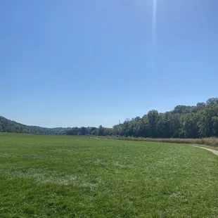 Located near the front of the bardstown entrance of broad run park right next to the spray ground and playground portion of the park. This is a giant flat grassland designed for things such as picnics, flying kites or for animals and kids to run wild in open spaces. It always has quite a bit of people there but it is very massive. You could honestly host a very large outdoor concert here and nobody would know it wasn't meant for that. Me and my family usually spend most of our time doing the spray ground/playground or walking trails but this is still a really nice addition to the park overall. Very relaxing on a nice day for sure. And if you don't want to rough it and picnic on the ground they do have some picnic tables in the area.