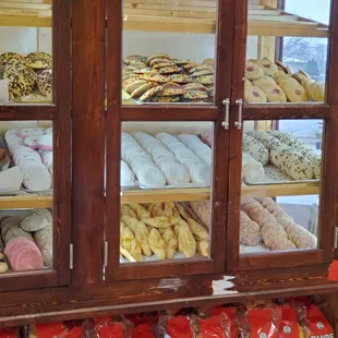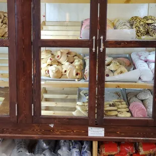 a display case full of pastries