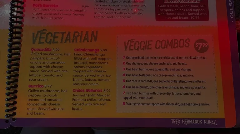 October 24, 2020 - While staying at the nearby Greenbo Lake State Park lodge, we came here for something different than the food at the park restaurant, and Tres Hermanos delivered!Every other table was marked off in order to achieve social distancing between groups. The servers were wearing masks, and were friendly.Hubby ordered the Classic Steak and Shrimp Fajitas, while I ordered a Combination with a tamale, chile rellano, and a cheese enchilada. Everything was delicious and we enjoyed the visit.