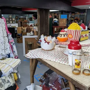 Extra fun filled booth options with some very nice moderate prices items from years gone by. Extra friendly staff who are willing to help you find something or just chat. Very nice selection of Fenton Glass. SHOP LOCAL! The down stairs has used furniture and up stairs are clean well laid out nooks and crannies for exploring and buying.