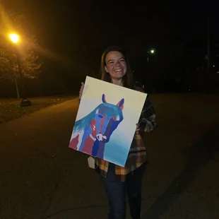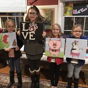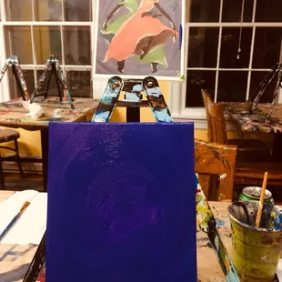 We happened to find them at their pop-up open paint hours at Logan street market. They were there from 11am-4pm. They have different size canvasses to choose from and they provide the acrylic paints, brushes, pencils, and aprons. It was fun coming up with our own paintings. The employee was super friendly and helpful with answering questions. It was a fun experience and we got to walk away with a new piece of art!