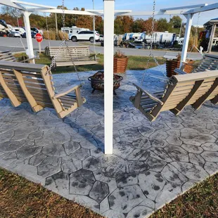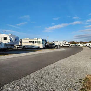 We stayed here for two weeks to explore the surrounding distilleries, horse events, and parks, etc. It is a very nice RV park with great staff and amenities. It has super full hook up, pull through sites. There were clean, nice bathhouses also. The landscaping and pool were terrific also. There are slides and water basketball (with volleyballs) available. They have a lot of group fire pits surrounded by hanging swings which are great for campfires and s'mores! Doggy stations and grassy areas and doggy park for your fur children. Lots of inflatable and playground equipment for your other children. So glad we stayed here for two weeks. Add a Pickleball court and you'll have everything!