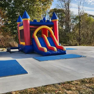 it's ok the slide was closed and we woke up in the morning with a power outage but the pool is clean and the office is clean there was a lot of geese poop on the basketball court too.