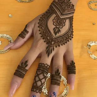 I don't give reviews often however this one is well deserved.Kimberly welcoming, kindness, professionalism, technics and attention to detail are above expectations. I give her a 5-stars rating for my Henna experience. She will make you feel like a new bride. I wish her the best with her business and plan on coming back for more services.