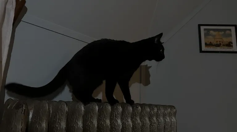 One of our cats on the prowl- she was intrigued by the owners' pets though she didn't get a chance to meet them