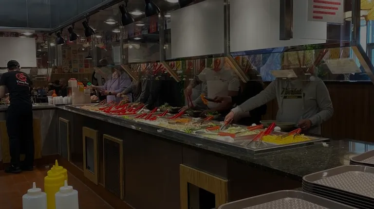 Food is wonderful, you don't need to fill your bowl 3 feet tall, pay the extra few dollars and this way you can create small dishes and and experiment with different meats and veggies and sauces to enjoy your way. Nice place to visit bathrooms were clean which is always plus. The staff is always nice, pleasant but quiet. I never give 5 because there is always room for improvement