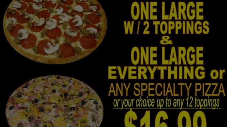 a large pizza sign