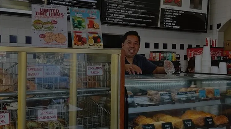 Probably my 2nd time coming here but it's a local favorite. I went with my brother who goes frequently. We both got jalepeno cheese bagels mine with the veggie spread and his with the lox. The bagels are toasty but warm and soft on the inside. The iced vanilla latte which is very similar to a Vietnamese iced coffee is perfect! Not too sweet, not too bitter. I love to support family owned businesses, everyone here is very nice and I'm definitely coming here to get my bagel fixes. It comes with a pickle too which is a plus.