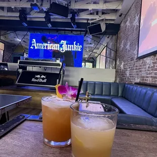 For a beachy bar, this spot is perfect for grabbing some drinks and playing some ping pong. The venue is nice and clean, well lit and spacious. We ordered the Junkie Cup, which are their redbull mixed drinks, that come in a large tropy cup and were surprisely good! I highly recommend, not too sweet, and very large for the price. Our server was funny and nice, and she provided great vibes for an enjoyable experience.