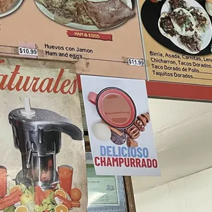menus on the wall