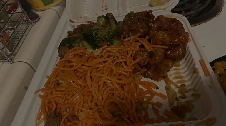 Food here is really well priced for the portions you get. Sweet and sour pork and pepper steak with chow mien is what's pictured. All for $12.12. Pretty solid. The service is always nice but it's definitely a take out place. I wouldn't really eat inside. The whole strip area isn't really vibing like that.
