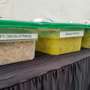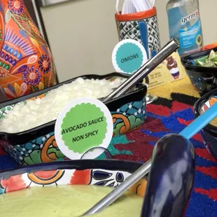 One table of the garnishes for the amazing tacos