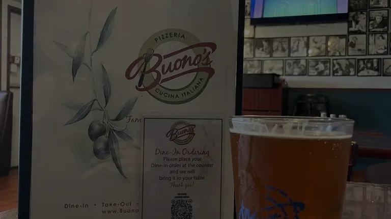 So my friend moved to the area and we wanted to watch the World Series and happen to see Buono's so we stoped in game was on had some pizza wings and beer. I have to say the serve was great and the food was delicious. Great we've too. Definitely coming back here.