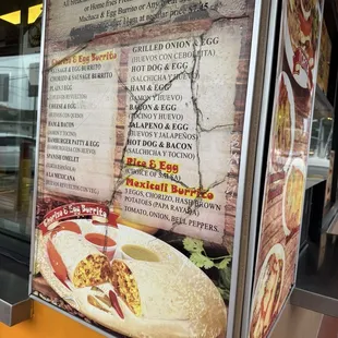 a menu for breakfast burritos