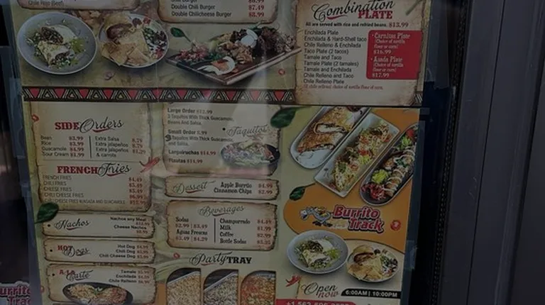 a menu for burritos