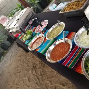 I had a party of 50 people and I had 3 meats, Asada, chicken and carnitas. Ok first of all the best asada ever. Tender, flavorful, juicy. The chicken was delicious as well. But the carnitas.... everyone loved it. Not dry, not bland. The best carnitas Ive ever tried. Now the salsas, they brought variety. I haven't had a green salsa that was not Spicy in years. And he had it. Thea best flavor. The red salsas were perfect too. A range from mild to hot with great flavor. Professional service with amazing tasting food. I will DEFINITELY be using them again. P.s he makes his own Horchata and lets just say we loved it so much I paid for the entire jug to take home