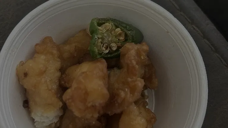 Combo C (3 items) Salt & Pepper Fish, Orange chicken and bbq pork (the rest of the pork is in a side container).
