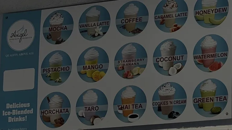 Drink selection and food menu