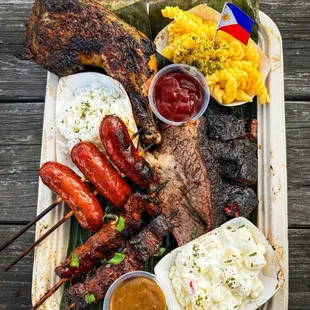 I really would like to like this place because it has a lot of potential. The owners are very nice. Sadly, I had higher expectations especially after seeing those beautiful photos and videos on Instagram. So I ordered the platter with pretty much everything in the menu. My first impression is COLD! Everything was cold, even the rice. It reminded me of cold rice that's been left overnight on the table, not stale but just cold. Mac n cheese was cold too. The salad is the only thing that I enjoyed cold. The meats were cold too. The chicken quarters were cold but perfectly cooked. They are overly seasoned though. It would have been better if they were hot. The brisket was good as well as the bbq skewers, the flavor was there but they were disappointingly COLD. A piece of advice, keep the rice in a rice cooker keep to it warm. Warm up the meat before serving them. I hope the owners' warmth can be applied to their food as well. I will come here again, I'll take the food to go and will warm them up myself in the microwave.
