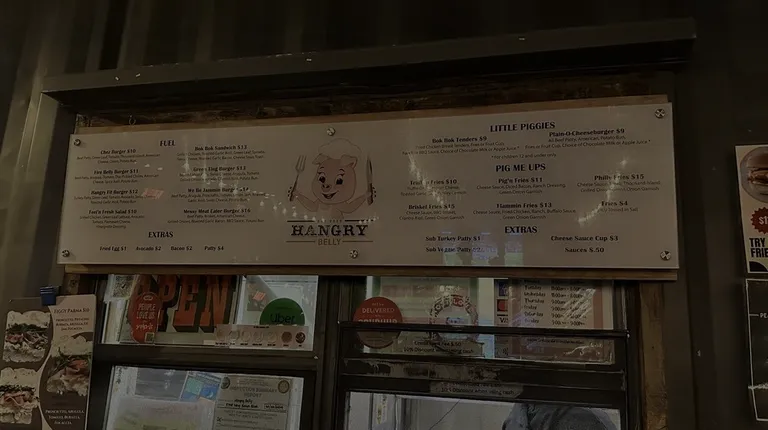 First time here. It's a cute small food hall with many choices like burgers, taqueria, bao, pizza. It is chose the Hangry Belly for my daughter's lunch today. I got the chez burger, bok bok sandwhich, and brisket fries. I added an extra bbq sauce and aioli sauce to try. Service was good!! And from LA Tagueria, got the watermelon Agua de fresca. Everything was delicious and flavorful. I would get the brisket fries again!!Thanks Hangry Belly for the great service today!!