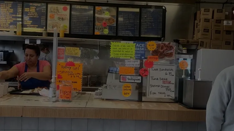 Restaurant Order Counter & Front Tables - Restaurant has not been remodeled for years but prices have drastically increased.