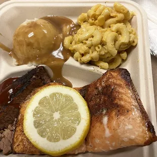 We had them catered at work today, they cooked and served us Smoked Turkey, brisket and Salmon for the mains. Green beans, Mac & Cheese and mash potatoes & gravy for the sides also had cornbread. Additionally they had some yummy bbq sauce for the meats called butt naked bourbon bbq sauce which you can get on Amazon it was really good with the brisket. Overall all the foods were yummy my fav was the salmon and Mac & Cheese. If you ever get a chance to try them.
