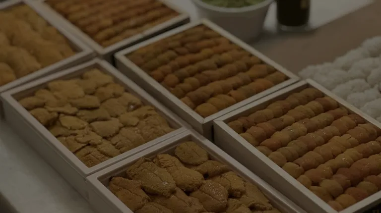 Back: Spicy tuna / toro, amaebi, wakame. Middle: chūtoro, sake, hamachi, otoro, kanpachi. Front: albacore, amaebi, hotategai.