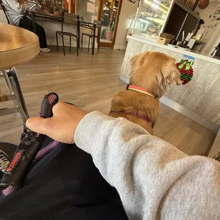 This place is a hidden gem. I came here on a Friday afternoon with my friend and her dog. The owners were very welcoming and treated Laney with so much respect. The restaurant is very clean and dog friendly. The owner also gave homemade dog treats to her! The vibes in here are very calming.My friend and I got a Matcha latte iced with vanilla syrup and it was the perfect sweetness. They have a variety of baked goods that are delicious. We tried a Matcha Blondie that had the perfect balance of Matcha and brownie. Their blueberry scones are amazing. We will definitely be coming back here and bringing Laney along.