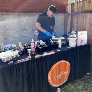 Used this catering service this past weekend for my sister's bridal shower event. The crepe server was very kind and calm throughout service even though my thousands of aunties wanted to try all the crepes on the menu lol. We chose 3 options, creamy chicken cilantro, portobello mushroom with ricotta and spinach and hazel berry (Nutella banana and strawberry) our total for 25 people for 2 hours was $362 plus tip. He was on time and set up quickly. The crepes themselves were pretty good. I would say the chicken was a bit dry and cold though. It was like biting through a hot fresh crepe with a cold chicken center. That was unappealing to me but my guests did not complain. Overall it was a good experience. I will note that communication prior to the event was lacking. I got no confirmation communication prior to the event. I messaged on Instagram, texted and could not leave a voicemail on their line as the mailbox was full. I tried to call an hour before to see what time they were planning to come but I could not reach anyone and no one contacted me that week prior to assure me. For an event that's solely banking on one service to feed their event it was definitely giving me hardcore anxiety. I would say they need a better system to make sure proper communication is made with the customer. Even upon giving the deposit and I got no receipt or no response that deposit was received and my event was confirmed. It made me a bit upset but hopefully this review helps give them insight into the customer's wants and needs.