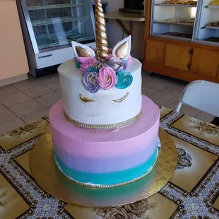 Went in to this bakery looking to purchase a cake for my nieces birthday party. I was able to order my cake and receive it exactly the way I purchased it. The head baker came out and greeted me and also gave me some great suggestions for cake and frosting choices. He even let me sample some of the cake because I was looking for the most moist. In addition, I was able to order a gorgeous unicorn themed cake . It not only looked good but the taste was undeniably delicious and not extremely sweet like other cakes. (Cream cake with chocolateFlavored buttercream frosting) If you're looking for a great birthday cake give this bakery a chance. Another baker gave me a free concha and bollilo. Probably the best I've ever tried and it tasted fresh and like it had a hint of butter in it. Irresistible ! Definitely will order from here again.