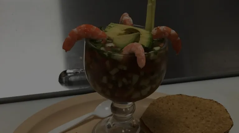 Tostada de ceviche de camarón.