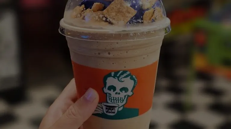It took a while to digest everything going on inside the coffee shop but the girl taking our order was really patient while we overlooked the menu. We ended up trying 2 blended drinks:* The Frankenstein- matcha green tea blended with chocolate chips and mint, and topped with crushed Oreos. The matcha flavor was very underwhelming. Just tasted like blended milk. The Oreo flavor was not very pronounced either. If you're into a very light matcha taste, this might be for you* The Peanut Butter Crunch- mocha blended with peanut butter syrup, topped with black whipped cream and Reese's cereal. I am definitely a peanut butter girlie but this one reminded me too much of a protein shakeThis coffee shop is totally unique! From the outside decor, to the pinball machines inside, to the awesome merch, and the fun stickers and pins sold at checkout... it's a feast for the eyes. They offer an extensive coffee menu-- from regular coffee and espresso, to premium cold brews, to blended coffee (my favorite when I want a sweet treat), to lemonade and tea-- there is bound to be something for everyone!