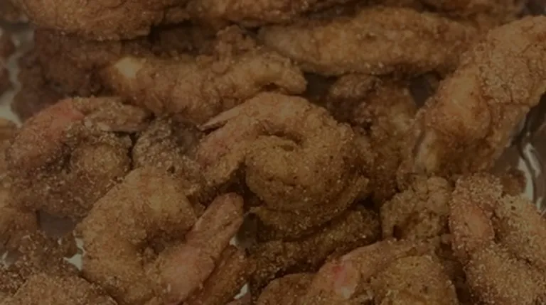 Golden Fried Shrimp, Catfish, Collard Greens with Bell Peppers, Macaroni and Cheese, Candied Sweet Potatoes