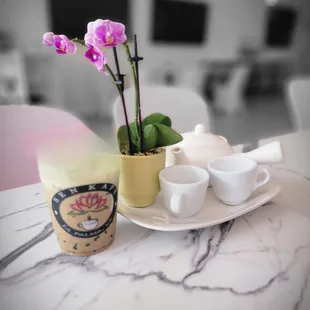Amazing tea, service, and ambiance! My partner arrived past their closing time (5 pm), but they still helped him. Ordered a honey jasmine milk tea, less sugar with basil seeds, and it was perfect. Not too sweet, and the tea was not burned. Loved the basil seed option.Will def be back, thank you Sen Tea!