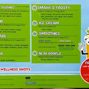 My go to for drinks on a hot summer day! There's healthy option to choose from like acai bowls, wellness shots, customized flavored tea blends, smoothies, milkshakes and slushees. I haven't ventured to tht side of the menu yet but I've been stuck to the other side. I prefer the slushee mixes but my son likes the half slushee half ice cream combo drink, and the ice cream is homemade
