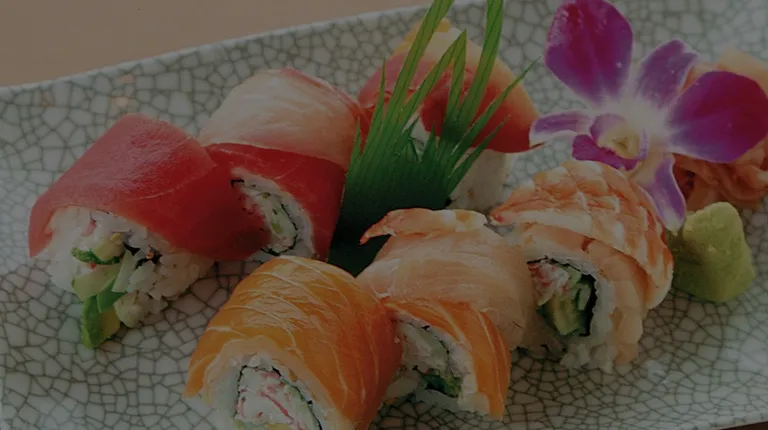 a plate of sushi and rolls