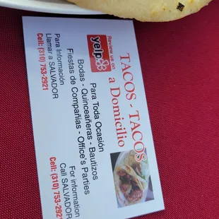 This is my second time hiring this taco business and both times have been a hit! People compliment the tacos and always ask who is catering. Happy to recommend this business. This second time I hired them was for a work event. Salvador was very responsive and was able to provide me with invoices and receipts of payment for my work reimbursement. The food is delicious! My package included rice, beans, chips and salsas! Supporting small businesses is important and especially a business like this one that provides great customer service and quality food.