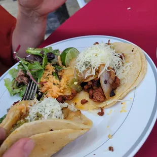 Steak tacos and rice.