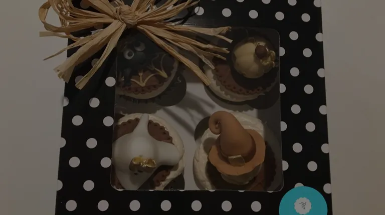four cupcakes decorated to look like halloween