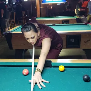 This place is an absolute credit to an otherwise sterile neighborhood. The bartenders are friendly, fun, and not too bad on the eyes, if I'm being honest. Do yourself a favor and come in for one. Then do yourself another favor and stay for "I can't remember how many."PS: ample pool tables and an internet jukebox for the win