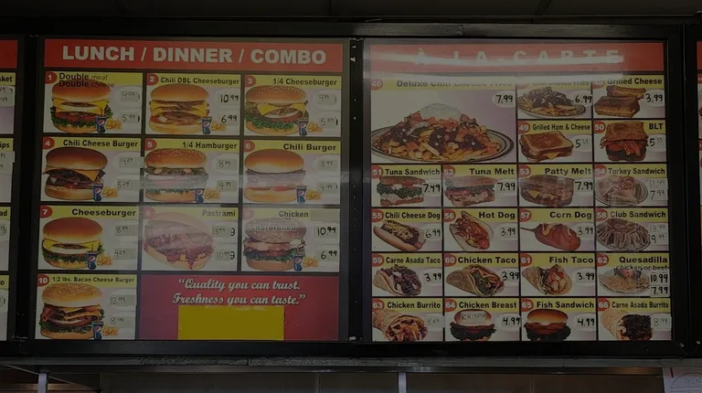 I have ordered from here for at least half a dozen times since they had their $1.99 cheeseburger banner outside. A #1 combo and their $1.99 cheeseburgers each and every time. I have not tried their other food items.Even with just their #1 double cheeseburger combo which is like $11, the pricing, to me, is better than all the local fast food places around them. They are generous with the fries. My only complaint is they give a small drink cup. If it was medium sized, I'd be happy.Overall it is a gem of a place.Service is friendly, while not as fast as fast food places, it is still good enough.