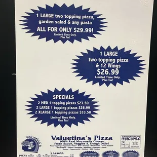 Their Pizza has Always been good every time. I would drive out of Costa Mesa to get their pizza. I have been a dedicated customer since I was a teenager back in 1996. I highly recommend this place from the bottom of my heart. Prices are reasonable and the food is great quality. This is not a dinning location if some are curious. It's take out or delivery only. But definitely worth the time. Thank you for all you guys have done, Valuetina's. Keep it going.