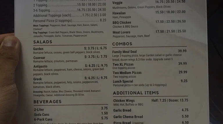 I really want to give them five stars. We would get the 3-6 topping pizza all the time and would get the same toppings over and over and no issues. Now they have started double charging us for two toppings of bacon. It used to be bacon pepperoni garlic mushrooms and bacon. And this was our consistent order. Then when I'd get there to pay and pick it up the price started seeming diff. So after I paid the first time I took and look and was like oh they accidentally charged me extra for extra bacon. Then the next time I mentioned it and he said oops they'll make sure next time. Now the third time it happened and they apologized and he'd refund which was great but I just told him to keep the extra and put it in tips. Now I think I'm seeing that they are going to change bacon on their menu. After years of this pizza I'm kinda sad.