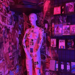 the inside of a store with neon lights